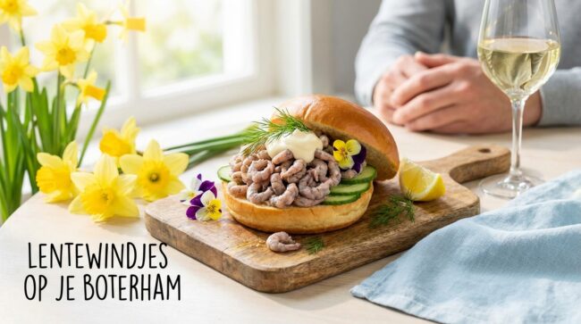 Wanneer de lentezon zachtjes door de ramen naar binnen valt, verlang ik naar een broodje dat die frisse lentewindjes vangt. Dit garnalenbroodje doet precies dat: het brengt de zee en de lente samen op je boterham. Een lichte, smaakvolle traktatie die je direct meeneemt naar het kustplaatje van Nederland in het voorjaar. Ingrediënten⏱️Voorbereiding20 min🍳Koken5 min⚡Totaal25 min🔥Calorieën450 kcal👥Porties4 personenIngrediënten−4+🥬grijze garnalen, gepeld250 g🥬sneetjes ambachtelijk witbrood4🥬verse roomkaas100 gkleine rode ui, fijngehakt1🥬eetlepel verse dille, fijngehakt1🥬eetlepel citroensap1Peper en zout naar smaak🥬Een handvol frisse rucola🫒eetlepel olijfolie1BereidingRooster de sneetjes brood licht goudbruin in een broodrooster of bak ze kort in een koekenpan met een beetje olijfolie. Dit…